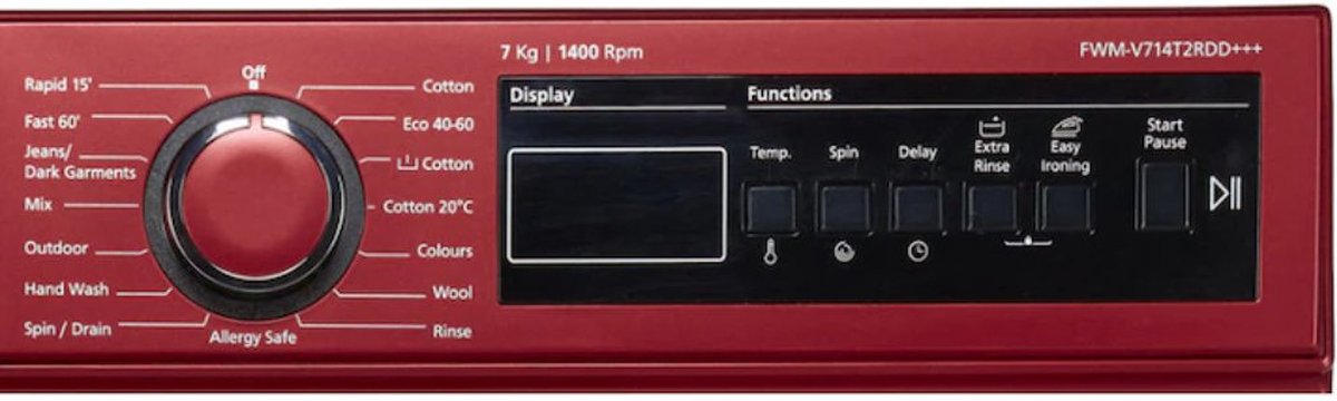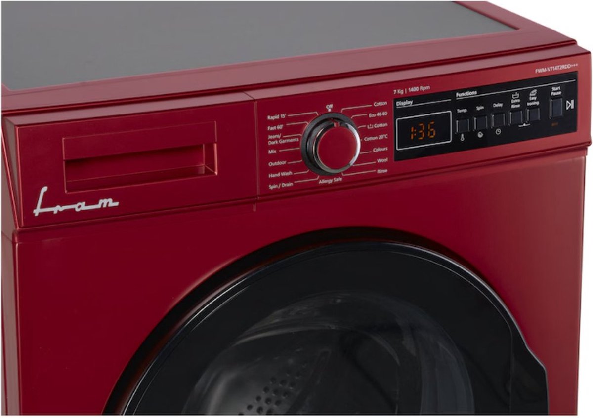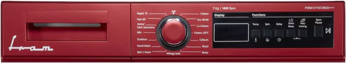 Stel Notificatie voor Product in: Fram FWM-V714T2RDD Wasmachine - 7 KG - Retro Design - 15 Wasprogramma's - LED Display - Anti-kreukfunctie - Allergieprogramma - 1400 tpm - 5 Jaar Garantie - Rood -
