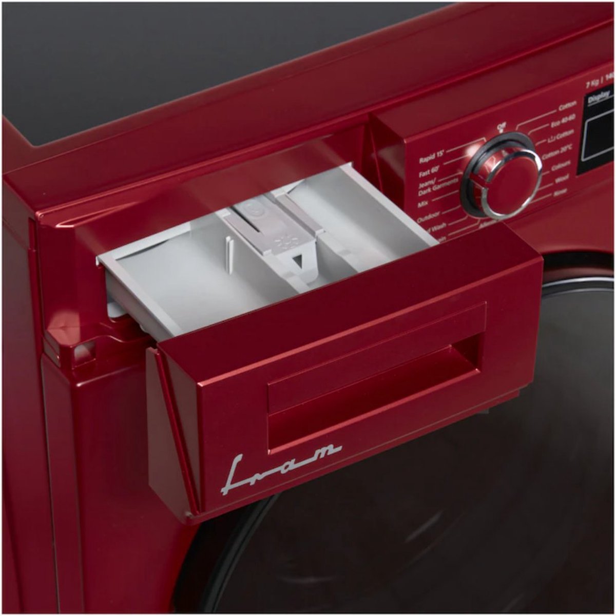 Fram Wasmachine – 7 KG – Retro Design – 15 Wasprogramma’s – LED Display – Anti-kreukfunctie – Uitgestelde Start – 1400 RPM – 5 Jaar Garantie – Rood