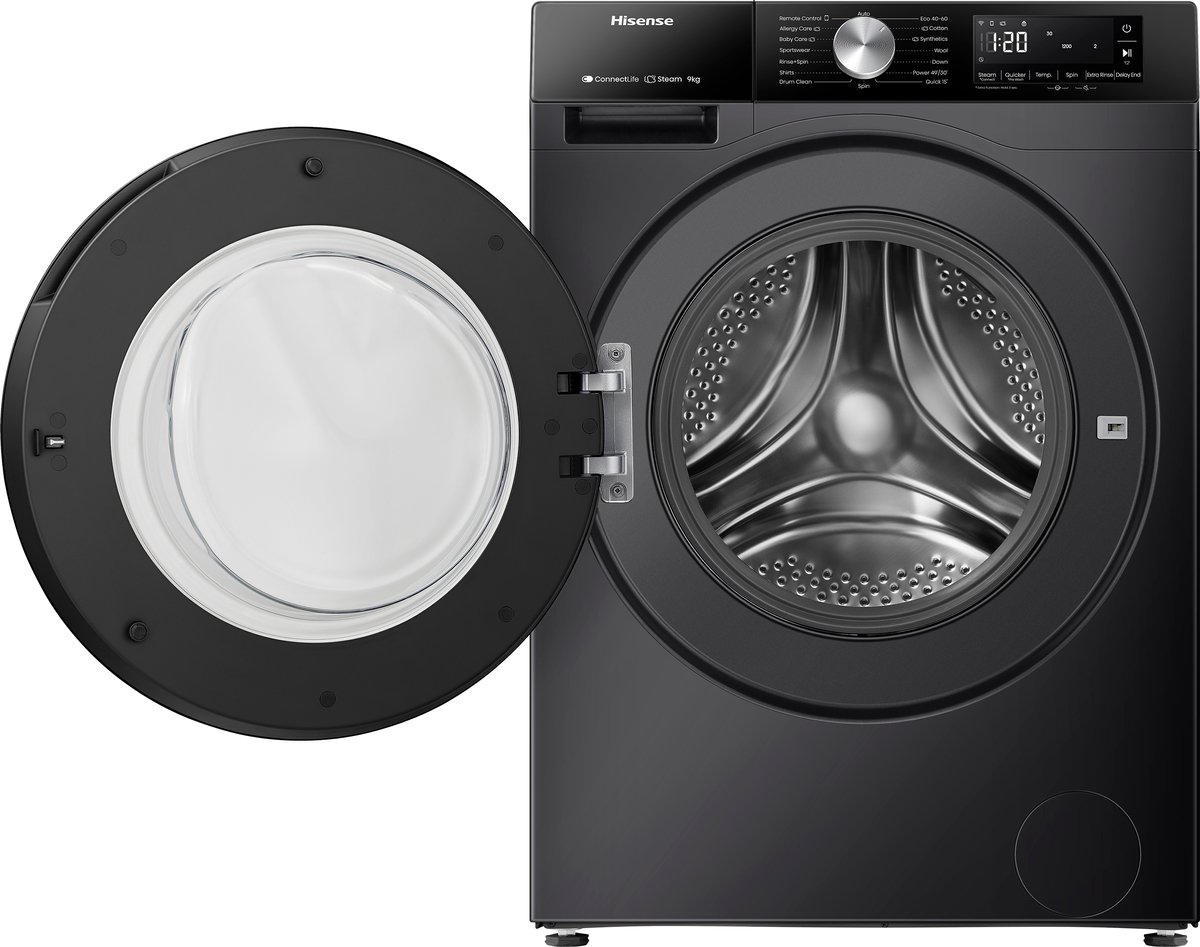 Hisense 3S Serie WF3S9043BB3 – Zwarte Wasmachine met Energielabel A -30% – 9kg – 72dB (A) – Steam Wash -1400 toeren – Power Wash 49′ – ConnectLife
